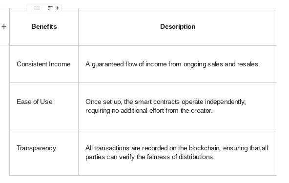 In summary, using smart contracts for automated income through royalties offers a powerful, efficient, and sustainable income model in the digital economy. It not only improves how artists and creators earn but also strengthens the digital art industry's economic model.