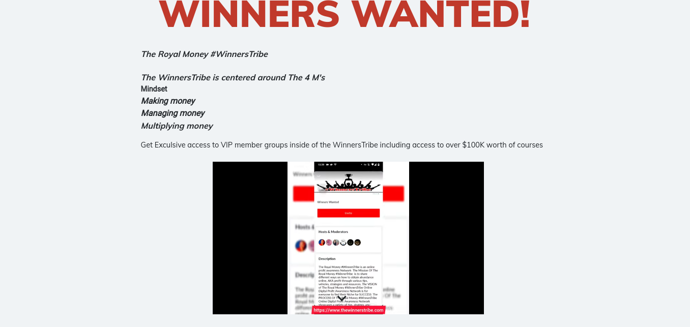 Welcome to WinnersTribe, a dynamic community designed to help you take control of your finances and achieve personal growth. Here, members gain access to a unique blend of resources, insights, and expert-led guidance tailored to every stage of financial success. Whether you?re an entrepreneur, aspiring digital creator, or looking to improve your financial habits, WinnersTribe offers the support and tools you need to build wealth and live the life you envision.